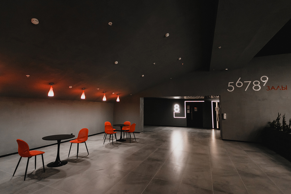 Благодаря новейшему дизайну пространство кинотеатра выглядит очень современно и интересно. Нейтральные цвета холла создают ощущение комфорта, а цветовые акценты приятно акцентируют внимание. Простор и сдержанная красота – беспроигрышное сочетание, которое передает впечатление от северного города.